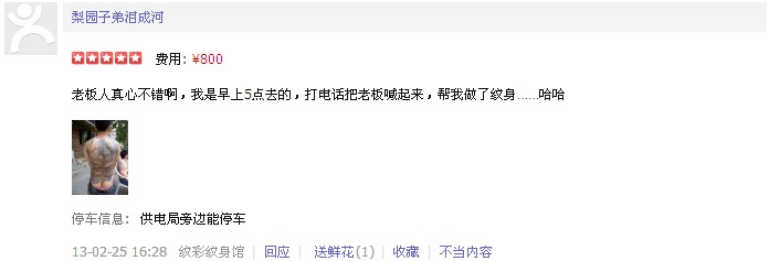 看看到紋過朋友怎么說(來自最真實的點評——大眾點評網):